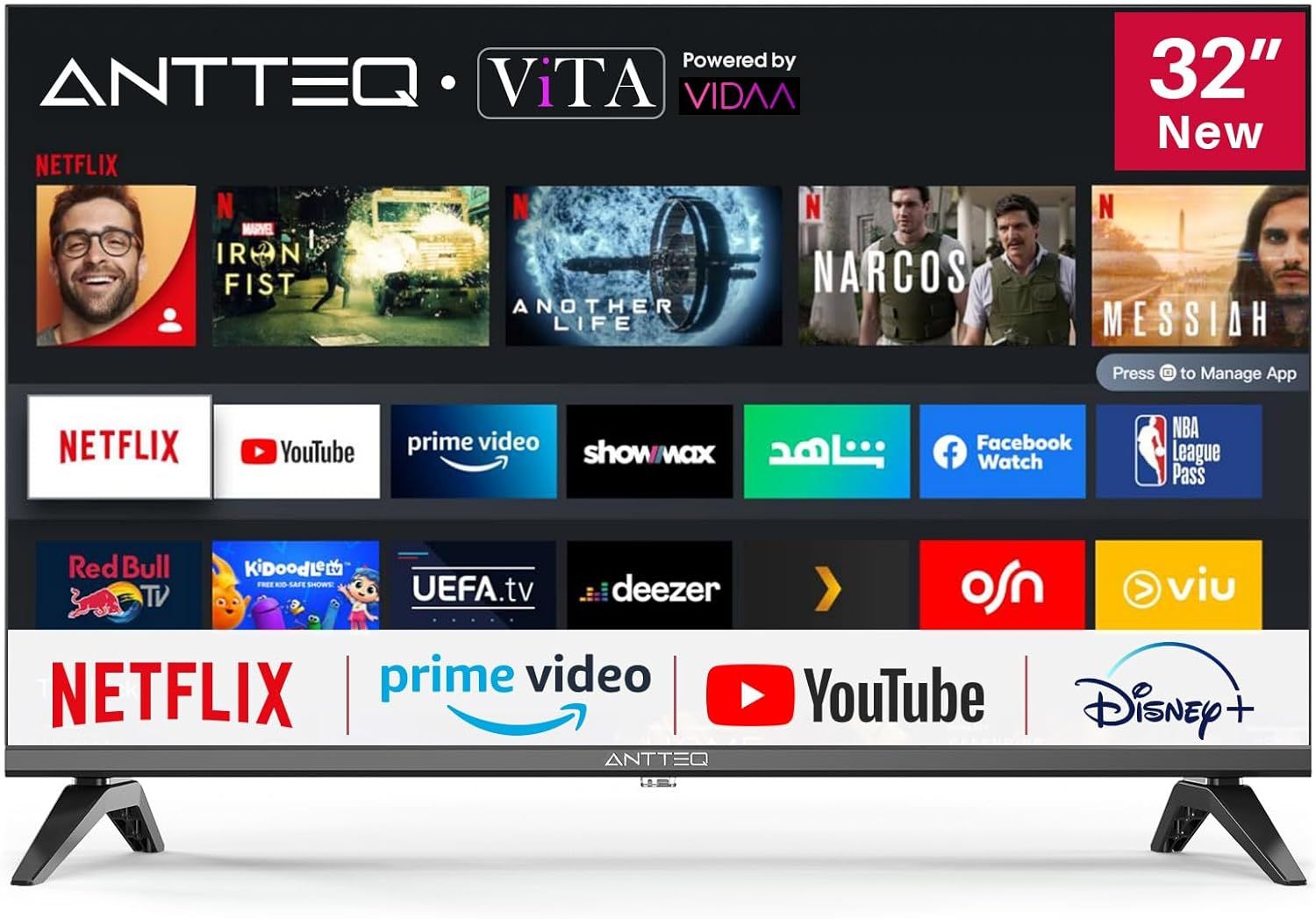 Antteq Vita Smart TV 32 Pouces (80cm), Vidaa OS Télévision avec Appli Mobile,APP Store,Share to TV,Netflix/DAZN/WiFi,HDMI,V32-AH3Q1L,2025