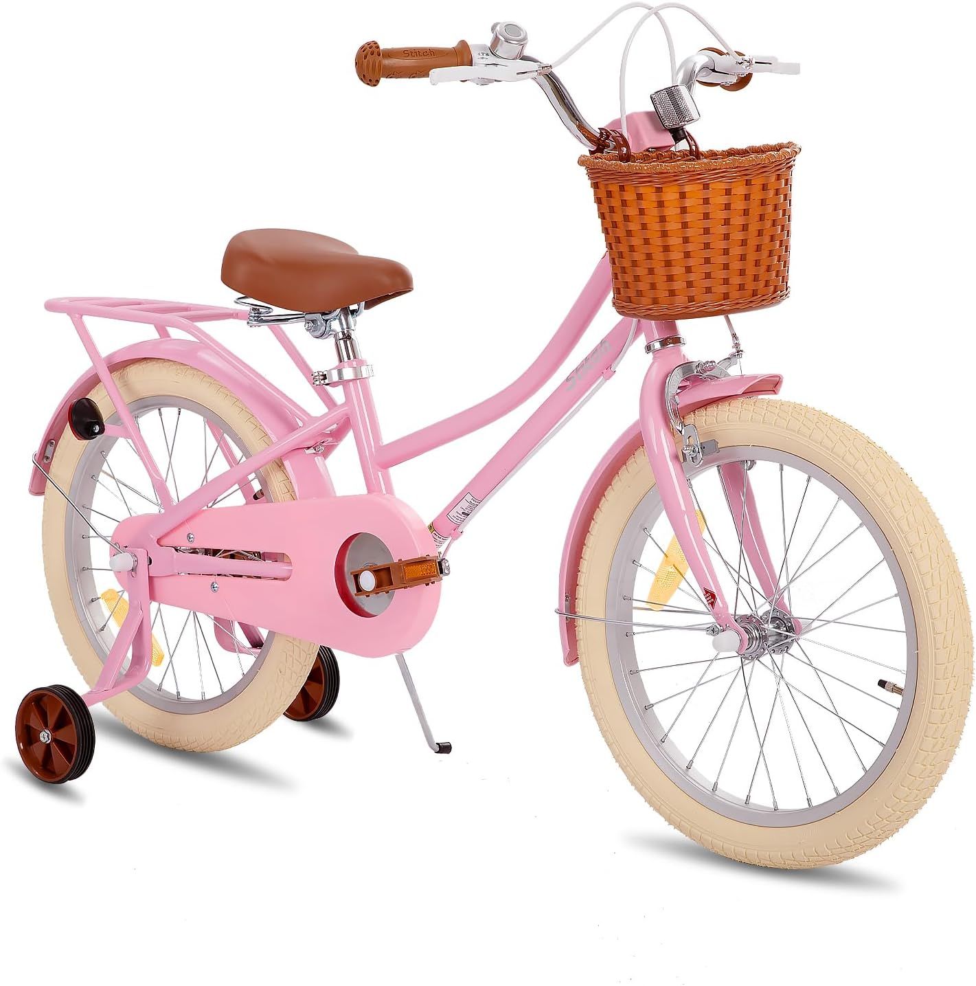 STITCH MANCHI 12 & 14 & 16 & 18 Pouces Vélo Enfant avec Panier & Roues stabilisatrices pour Filles & garçons de 2-9 Ans (Vert & Rose)