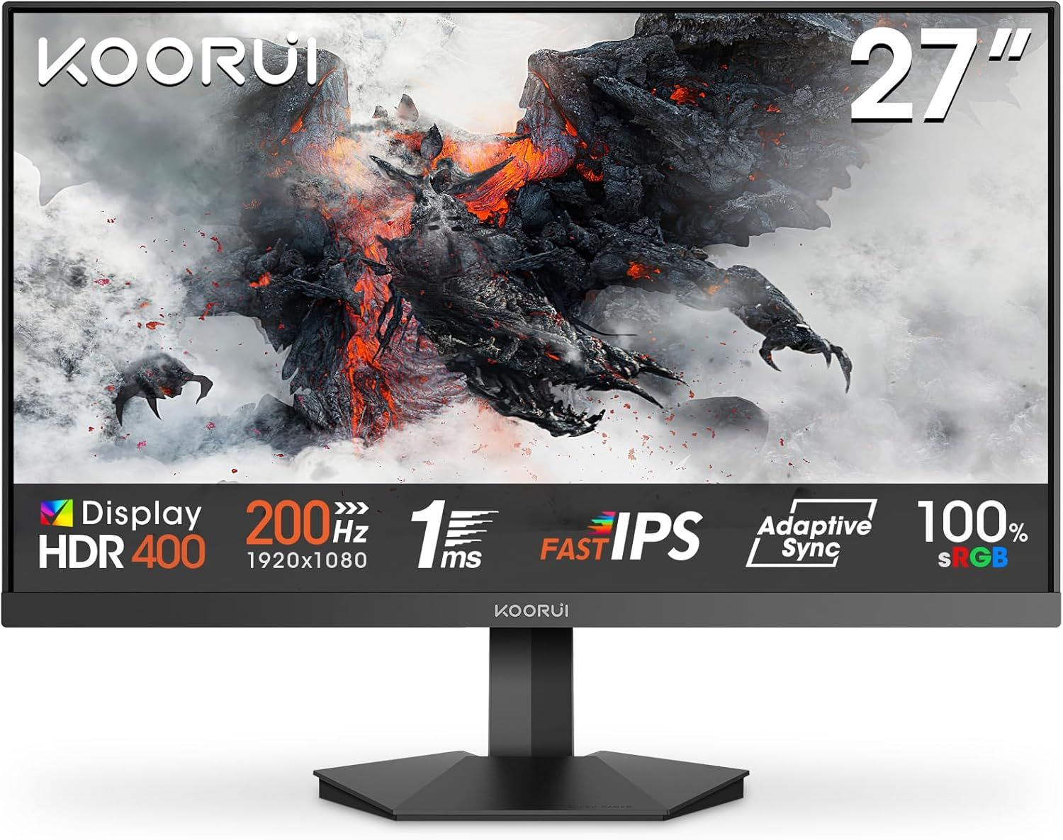 KOORUI G2711P Ecran PC Gamer 27 Pouces, 200Hz, Fast IPS FHD Ecran Gaming, 1ms, HDR400, Adaptive Sync, Compatible VESA 75 * 75mm, HDMI 2.0/DP1.4, Faible Lumière Bleue