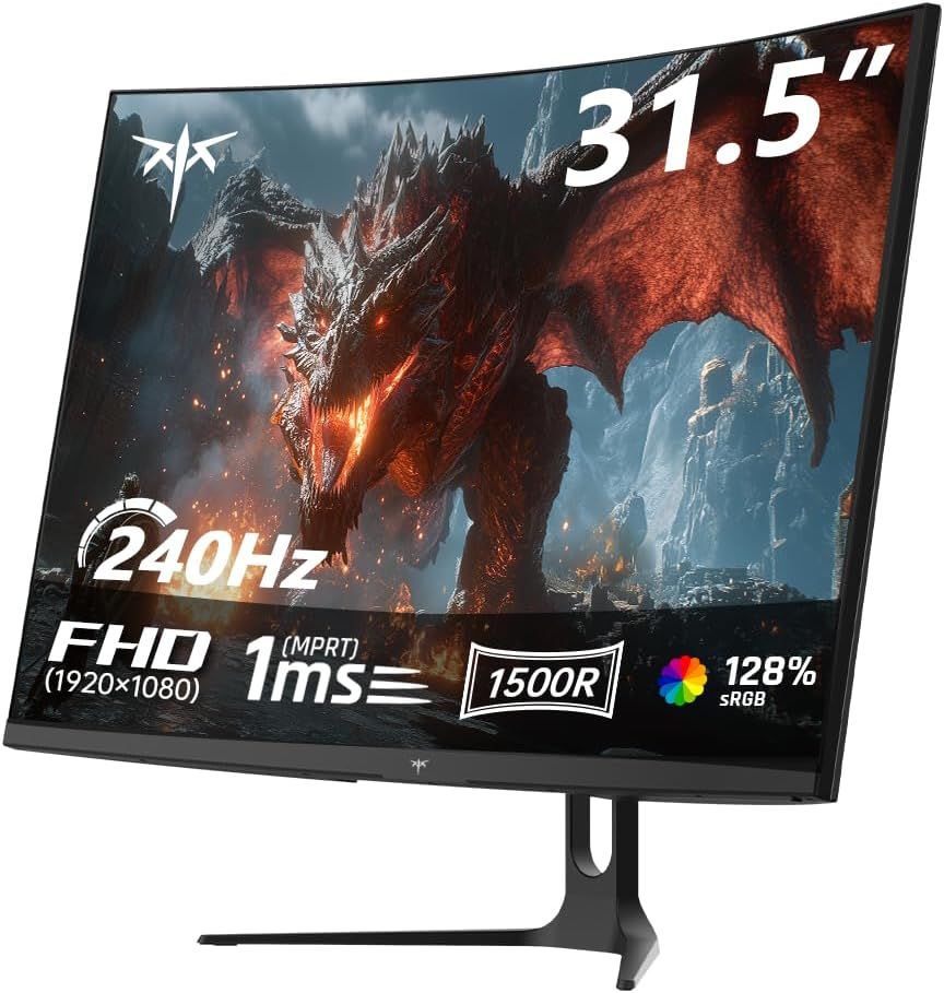Amzfast Écran PC Gaming Incurvé 32 Pouces, 240Hz, FHD, 1Ms MPRT, Adaptive Sync, sRGB 120%, HDR, Anti-Scintillement, Faible Lumière Bleue, HDMI 2.0/DP 1.4, VESA 75x75, AMZG32C3F